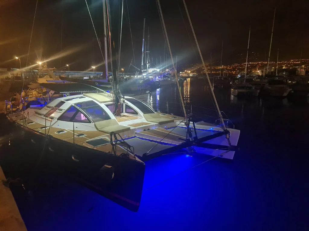 This sailing catamaran has a capacity for 12 people, ideal for navigating the waters in an intimate way.